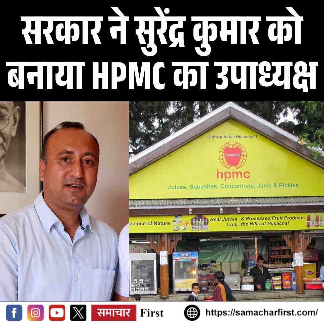 हिमाचल प्रदेश सरकार ने हिमाचल प्रदेश हॉर्टिकल्चरल प्रोड्यूस मार्केटिंग एंड प्रोसेसिंग कॉर्पोरेशन (HPMC) में महत्वपूर्ण पद पर नियुक्ति की है। सरकार की ओर से जारी अधिसूचना के अनुसार, सुरेंद्र कुमार को HPMC का उपाध्यक्ष नियुक्त किया गया है।