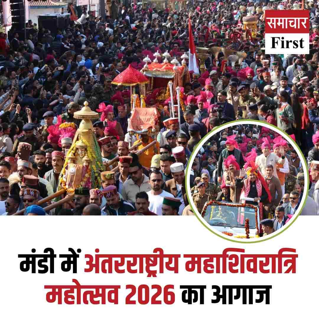 मंडी में विश्व विख्यात सात दिवसीय अंतरराष्ट्रीय महाशिवरात्रि महोत्सव 2026 का भव्य आगाज हो गया। ऐतिहासिक पड्डल मैदान में ध्वजारोहण और नगर देवता श्री राज माधो राय की अगवानी में निकली प्रथम जलेब के साथ महोत्सव का औपचारिक शुभारम्भ हुआ। मुख्य अतिथि के रूप में उप-मुख्यमंत्री मुकेश अग्निहोत्री ने कार्यक्रम में भाग लिया।