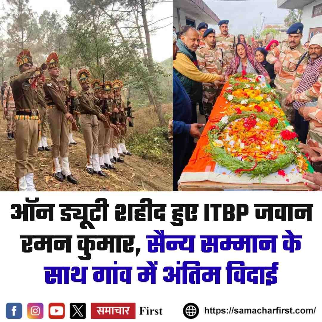 इस दौरान ITBP के जवानों ने गार्ड ऑफ ऑनर देकर अपने साथी को अंतिम सलामी दी। देशसेवा में समर्पित रहे रमन कुमार को पूरे सम्मान के साथ अंतिम विदाई दी गई।