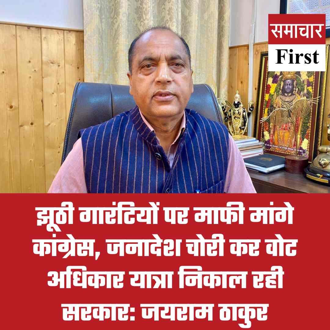 झूठी गारंटियों पर माफी मांगे कांग्रेस, जनादेश चोरी कर वोट अधिकार यात्रा निकाल रही सरकार: जयराम ठाकुर