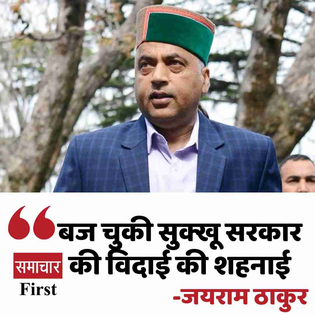 ➤ जयराम ठाकुर का सुक्खू सरकार पर बड़ा हमला, कहा—विदाई की शहनाई बज चुकी