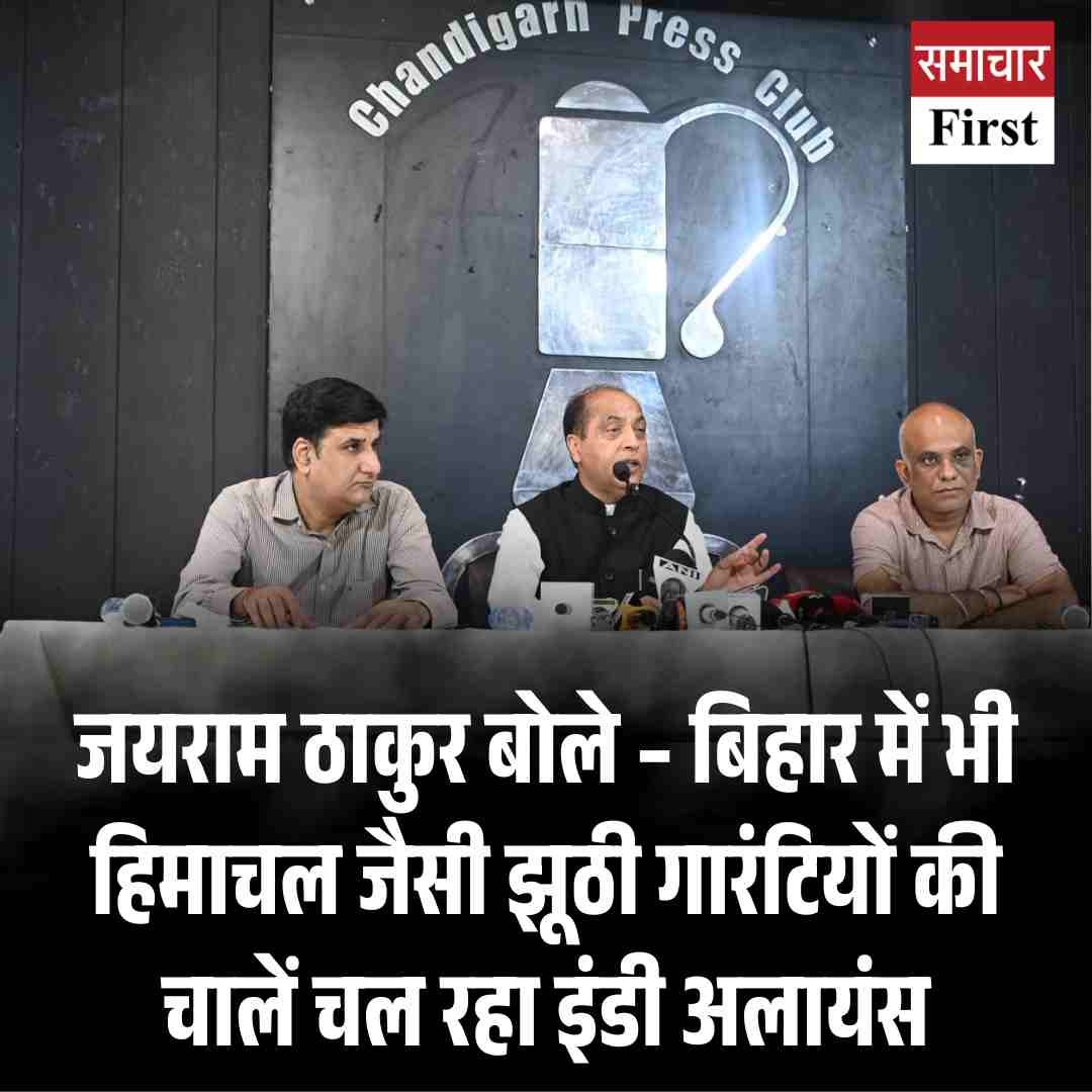 चंडीगढ़ प्रेस क्लब में आयोजित “मीट द प्रेस” कार्यक्रम में जयराम ठाकुर ने कहा कि कांग्रेस और उसके सहयोगी दलों की राजनीति छल और भ्रम पर आधारित है। हिमाचल के मुख्यमंत्री तक बिहार जाकर हमारी सरकार की योजनाओं को अपनी बताने से नहीं चूके। उन्होंने कहा कि कांग्रेस अब “गारंटियों की ब्रांड एंबेसडर पार्टी” बन गई है, लेकिन जनता अब इन झूठों का फैक्ट चेक करना सीख चुकी है।