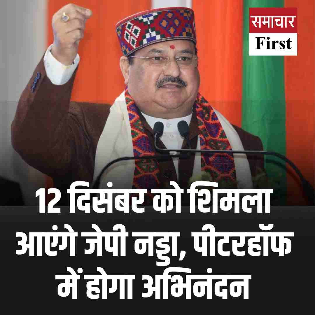 ➤ भाजपा अध्यक्ष जेपी नड्डा 12 दिसंबर को शिमला आएंगे, बिहार जीत के बाद पहला प्रवास
