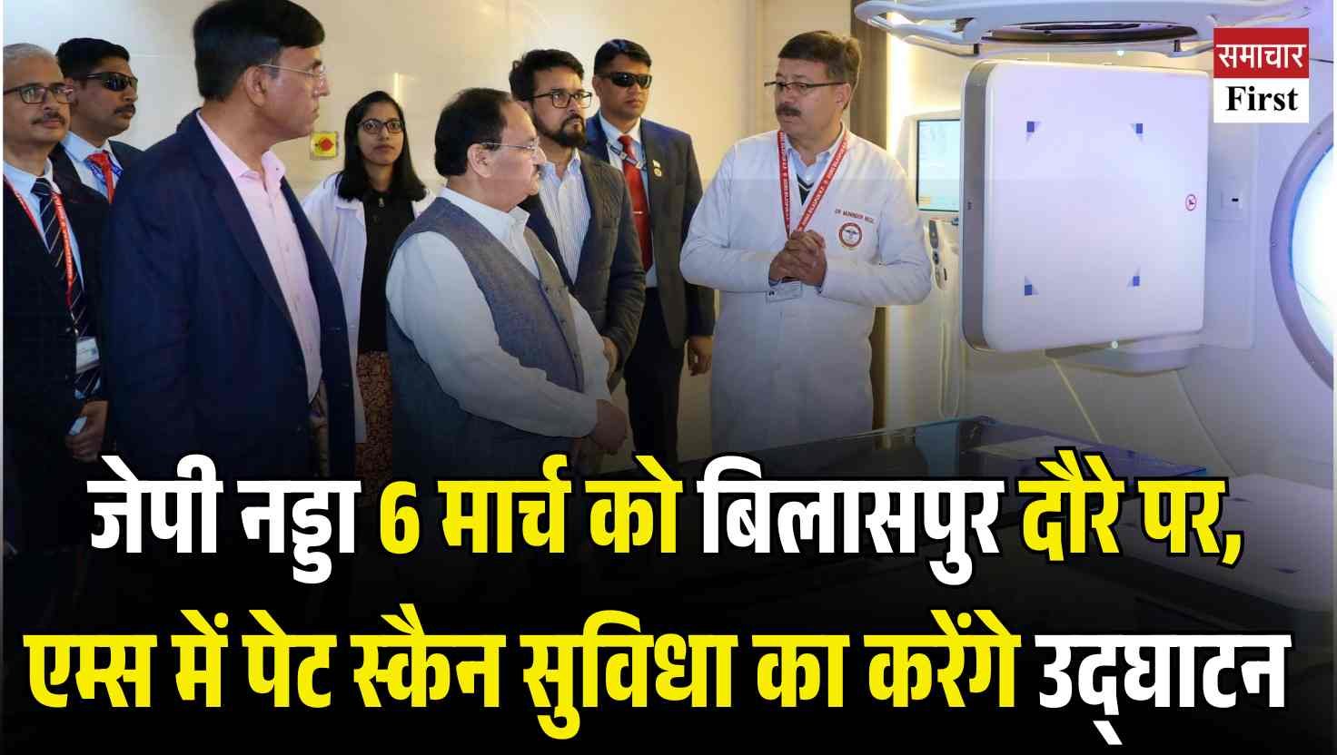 केंद्रीय स्वास्थ्य मंत्री जे.पी. नड्डा 6 मार्च को अपने गृह जिला बिलासपुर का दौरा करेंगे और एम्स में पेट स्कैन सुविधा का शुभारंभ करेंगे