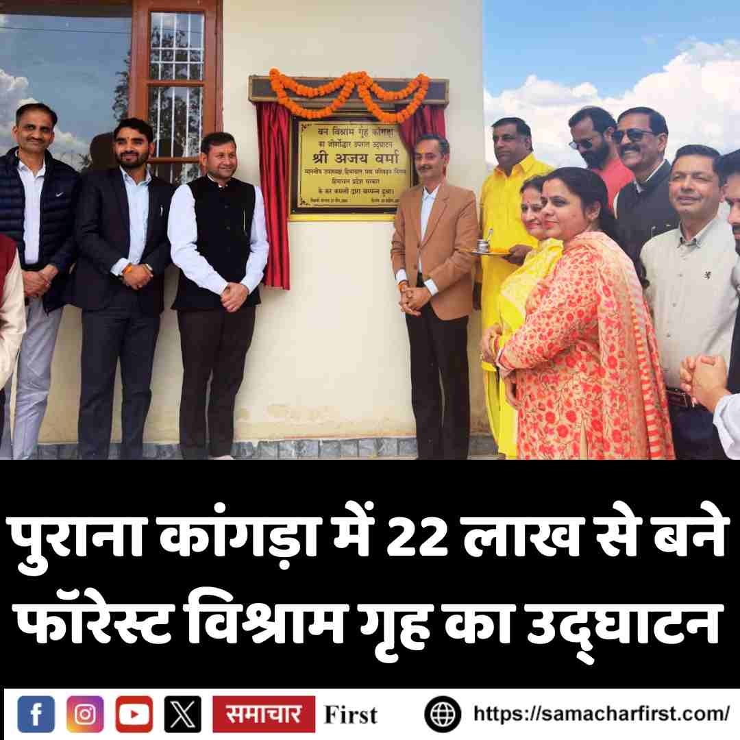 कांगड़ा विधानसभा क्षेत्र के पुराना कांगड़ा में 22 लाख रुपये की लागत से निर्मित फॉरेस्ट विश्राम गृह का बुधवार को उद्घाटन किया गया। हिमाचल प्रदेश पथ परिवहन निगम (HRTC) के उपाध्यक्ष अजय वर्मा ने इसका लोकार्पण करते हुए कहा कि क्षेत्र में विकास कार्य निरंतर जारी हैं और प्रदेश सरकार का पूरा सहयोग मिल रहा है।