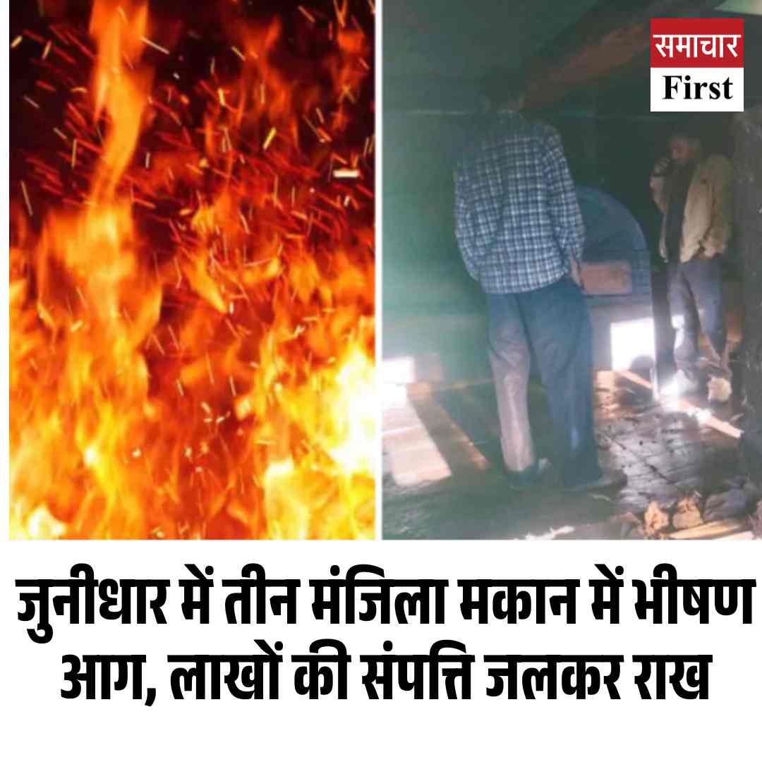 ➤ जुनीधार में सुबह 6 बजे तीन मंजिला मकान में लगी आग
