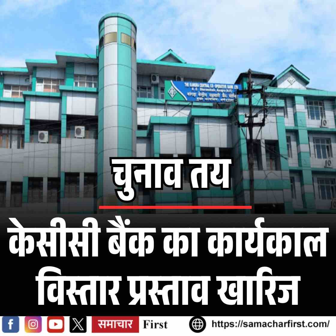 हिमाचल प्रदेश सहकारी सभाएं विभाग के पंजीयक (आरसीएस) ने कांगड़ा केंद्रीय सहकारी बैंक (केसीसीबी) लिमिटेड धर्मशाला के निदेशक मंडल को बड़ा झटका दिया है। आरसीएस कार्यालय ने निदेशक मंडल के कार्यकाल विस्तार के प्रस्ताव को खारिज कर दिया है, जिससे बैंक प्रबंधन में हड़कंप मच गया है। यदि समय रहते चुनाव की प्रक्रिया पूरी नहीं हुई तो प्रदेश सरकार को बैंक में प्रशासक नियुक्त करना पड़ सकता है।