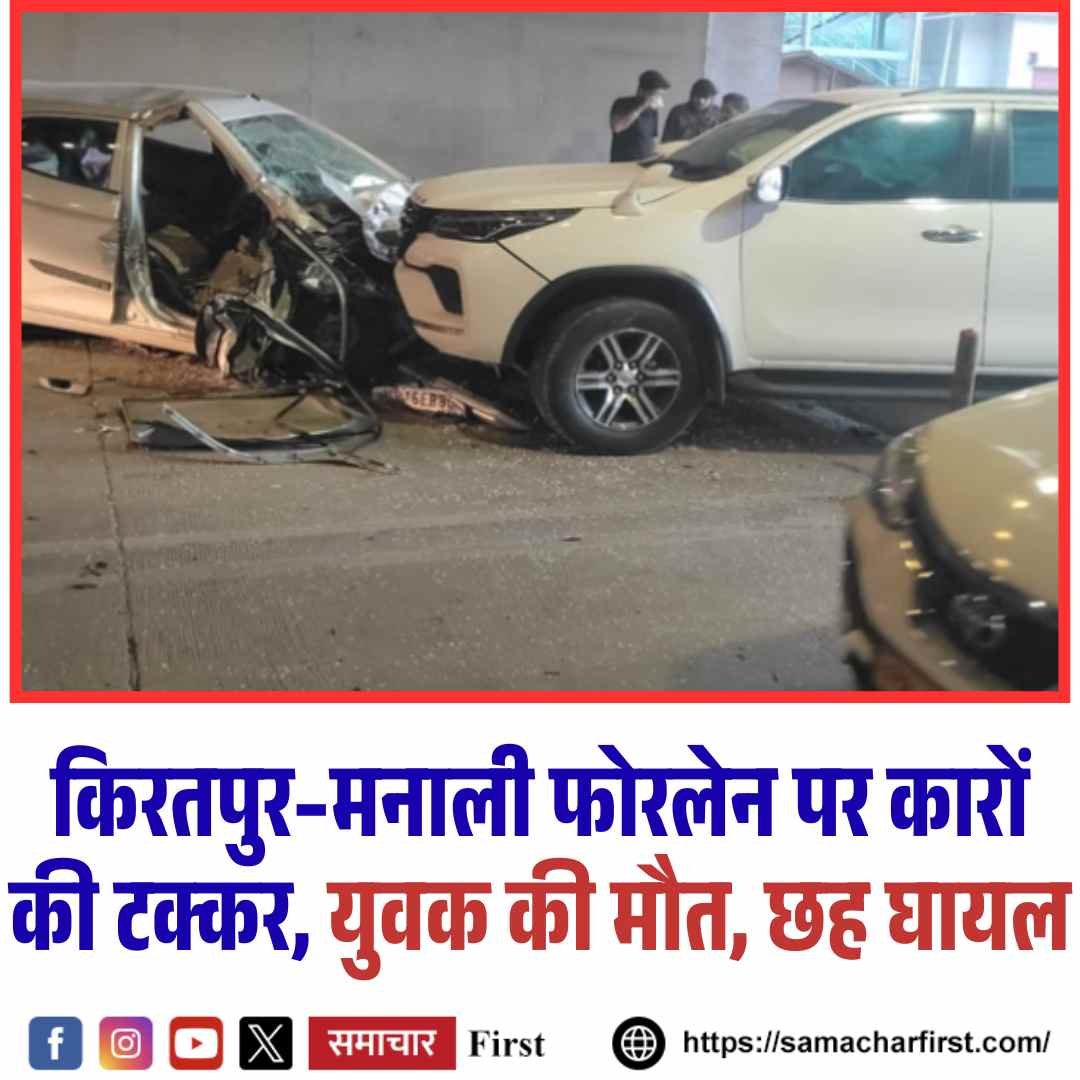 किरतपुर–मनाली फोरलेन पर कारों की टक्कर, युवक की मौत, छह घायल