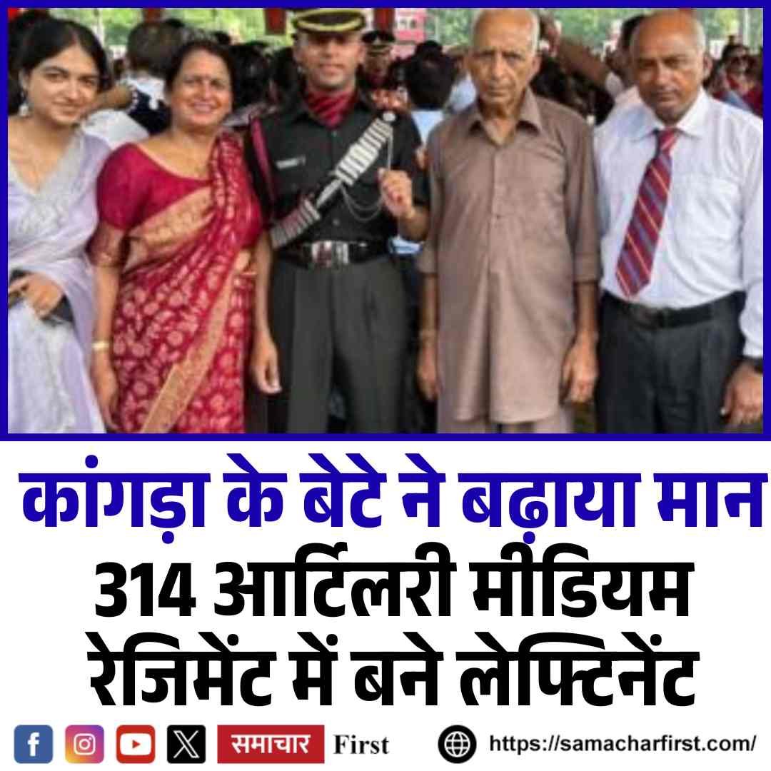 हिमाचल प्रदेश के भवारना-पंचरूखी क्षेत्र के युवा उपदेश कुमार ने कड़ी मेहनत और लगन से एसएससी परीक्षा पास कर भारतीय सेना में लेफ्टिनेंट का पद हासिल किया है। उपदेश को 314 आर्टिलरी मीडियम रेजिमेंट में नियुक्ति मिली है। उनकी इस उपलब्धि ने न केवल परिवार को बल्कि पूरे क्षेत्र को गर्व और सम्मान का अहसास कराया है।