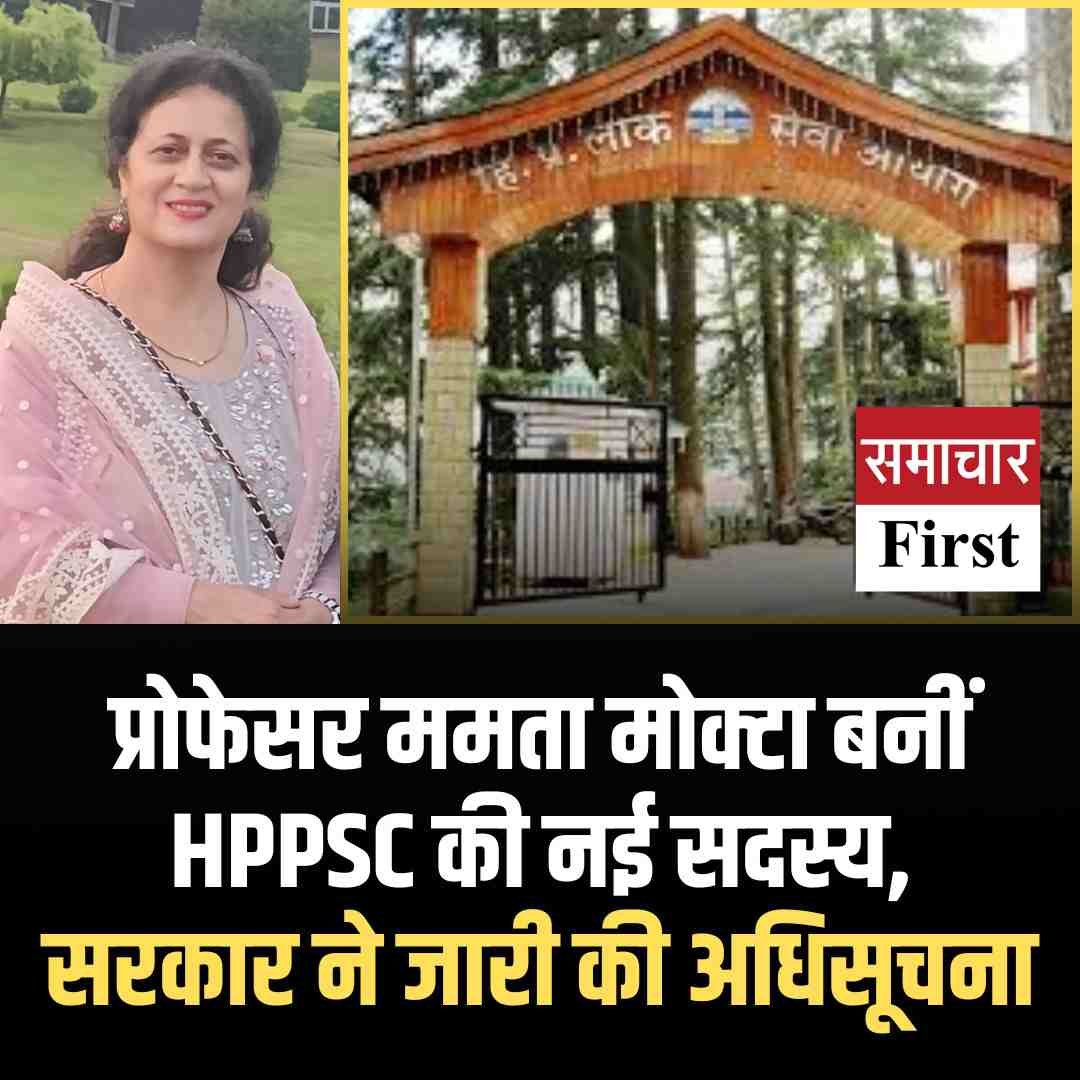शिमला। हिमाचल प्रदेश सरकार के कार्मिक विभाग (नियुक्ति-II) ने 8 दिसंबर 2025 को एक महत्वपूर्ण अधिसूचना जारी करते हुए प्रोफेसर ममता मोक्ता को हिमाचल प्रदेश लोक सेवा आयोग (HPPSC) का नया सदस्य नियुक्त किया है। यह नियुक्ति संविधान के अनुच्छेद 316 के तहत राज्यपाल द्वारा प्रदत्त शक्तियों का उपयोग करते हुए की गई है।