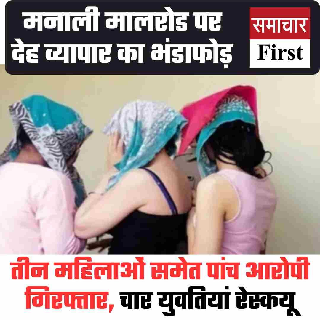 हिमाचल प्रदेश की पर्यटन नगरी मनाली में पुलिस ने बड़ी कार्रवाई करते हुए देह व्यापार के एक संगठित गिरोह का भंडाफोड़ किया है। पुलिस ने मालरोड क्षेत्र से तीन महिलाओं समेत पांच आरोपियों को गिरफ्तार किया है, जबकि जबरन इस धंधे में धकेली गई चार युवतियों को सुरक्षित रेस्क्यू कर लिया गया है।