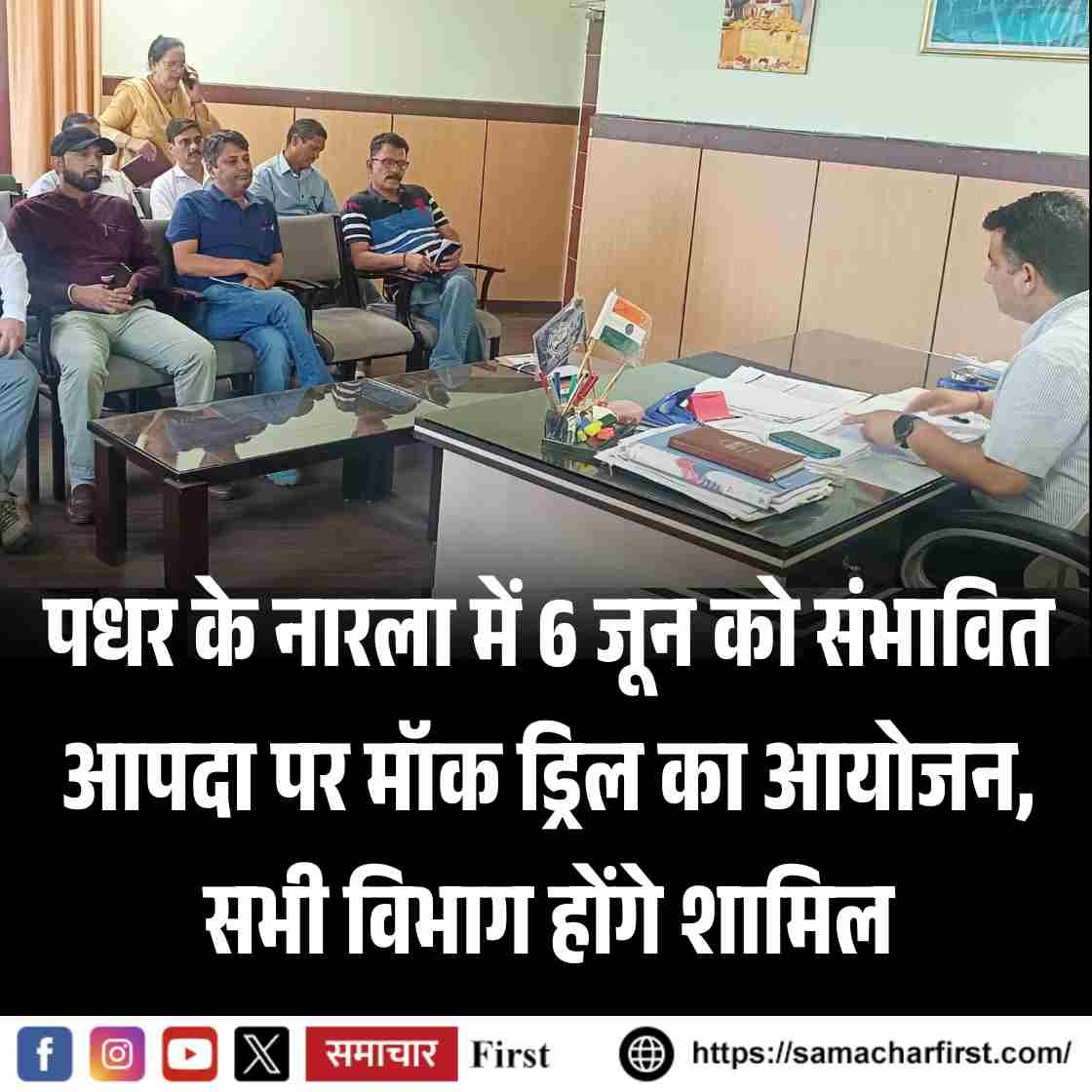 मंडी, विपलव सकलानी: उपमंडल पधर के नारला क्षेत्र में 6 जून 2025 को संभावित प्राकृतिक आपदा जैसे भूकंप और भूस्खलन की स्थिति को लेकर एक व्यापक मॉक ड्रिल आयोजित की जाएगी। इसकी तैयारी और समन्वय को लेकर आज एसडीएम सुरजीत सिंह की अध्यक्षता में एक महत्वपूर्ण बैठक एसडीएम कार्यालय पधर में संपन्न हुई। बैठक में विभिन्न विभागों के अधिकारी, पंचायत प्रतिनिधि और आपदा प्रबंधन से जुड़े प्रतिनिधि शामिल हुए।
