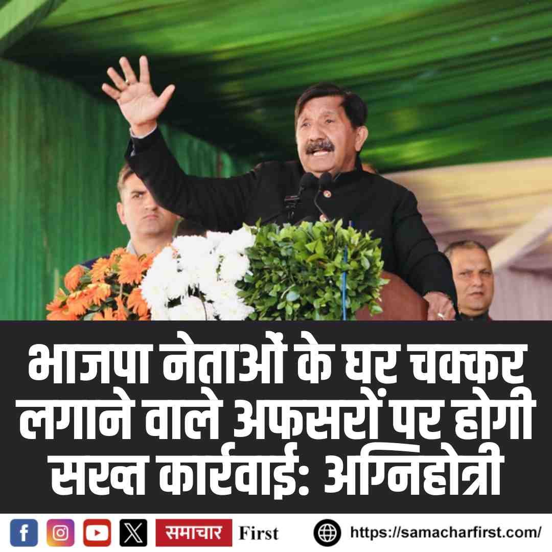 भाजपा नेताओं के घर चक्कर लगाने वाले अफसरों पर होगी सख्त कार्रवाई: अग्निहोत्री