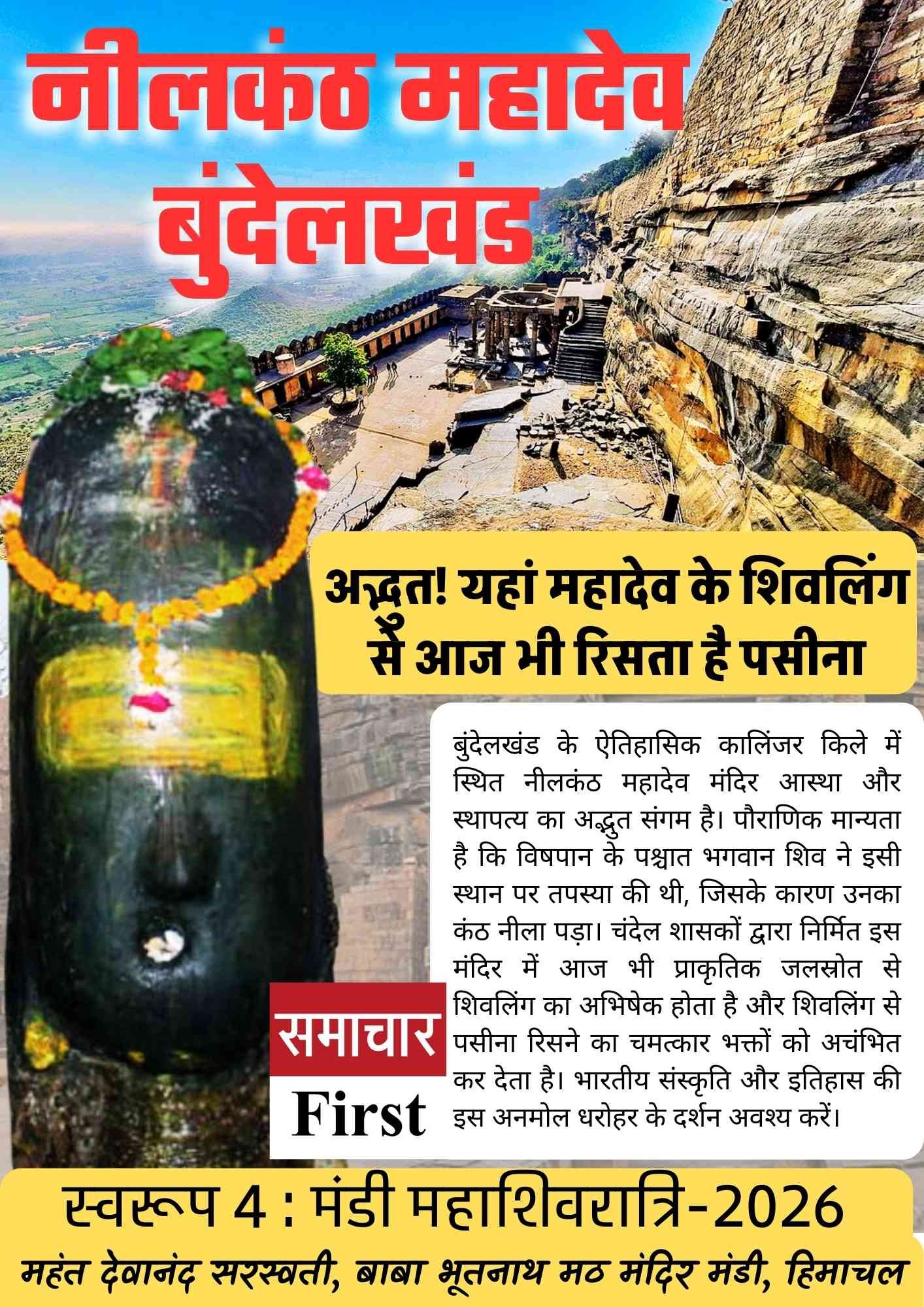 बुंदेलखंड के ऐतिहासिक कालिंजर किले में स्थित नीलकंठ महादेव मंदिर आस्था और स्थापत्य का अद्भुत संगम माना जाता है। यह मंदिर अपनी प्राचीन विरासत और पौराणिक मान्यताओं के कारण देशभर में प्रसिद्ध है।