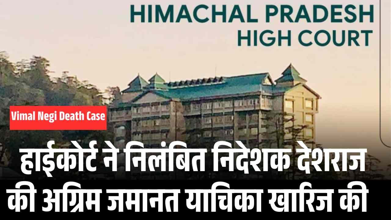 Vimal Negi Death Case: हिमाचल प्रदेश हाईकोर्ट ने बुधवार को विमल नेगी मौत मामले में निलंबित निदेशक देशराज की अग्रिम जमानत याचिका को खारिज कर दिया। यह फैसला न्यायाधीश वीरेंद्र सिंह की अदालत ने सुनाया।