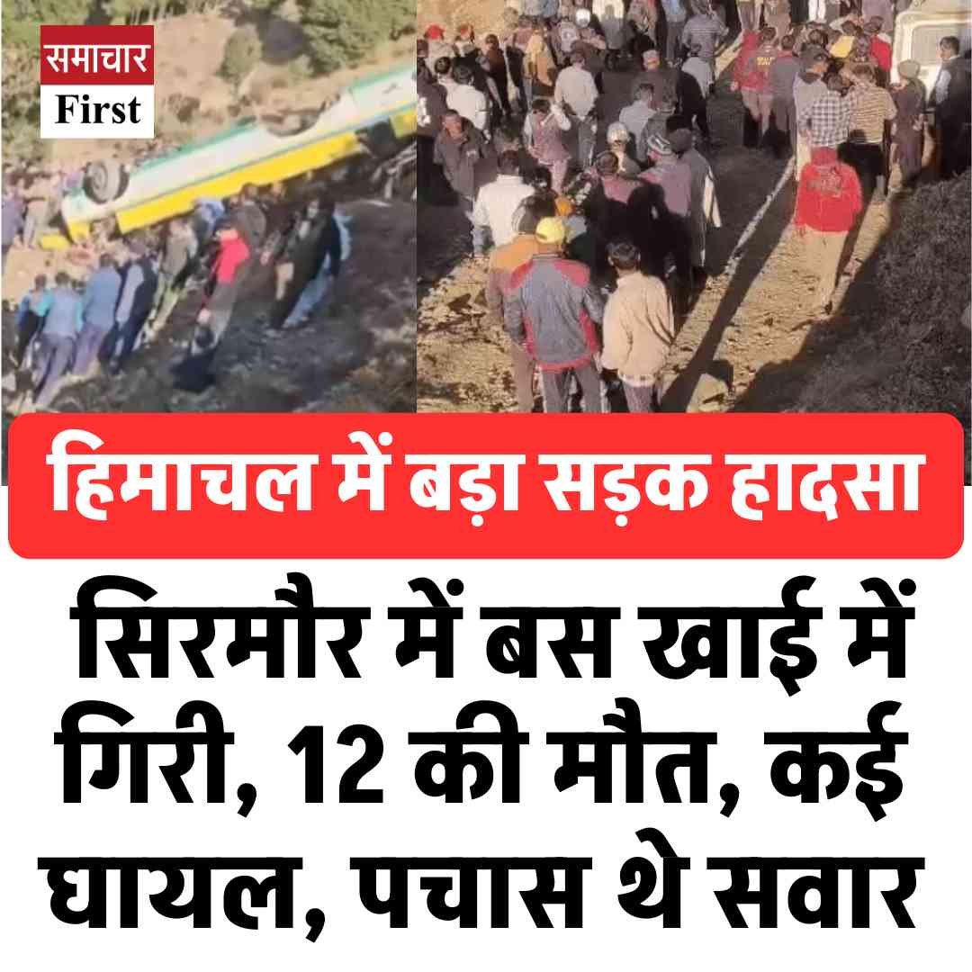 हिमाचल में बड़ा सड़क हादसा: सिरमौर में बस खाई में गिरी, 12 की मौत, कई घायल, पचास थे सवार