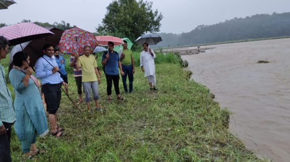 नादौन में बाढ़ की स्थिति का जायजा लेने पहुंचे उपायुक्त