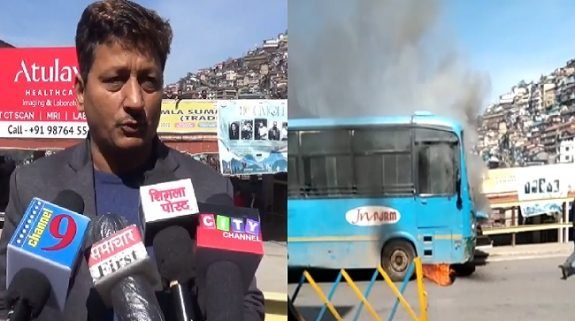 शिमला के भीड़ भाड़ वाले लिफ्ट के पास चलती बस में लगी अचानक आग