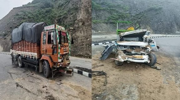 सोलन: कंडाघाट में ट्रक और पिकअप में जोरदार टक्कर, चालक गंभीर रूप से घायल