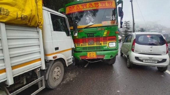 शिमला विक्ट्री टनल के पास बस और ट्रक की जोरदार टक्कर, यातायात हुआ प्रभावित