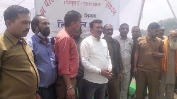 सोलन: मांगों को लेकर अंबुजा सीमेंट प्लांट के बाहर धरने पर बैठे ग्रामीण
