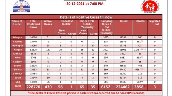 हिमाचल में गुरुवार को आए कोरोना के 65 नए मामले, एक मरीज की मौत