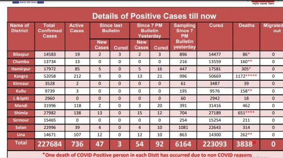 हिमाचल में मंगलवार को आए कोरोना के 54 मामले, 2 मरीजों की मौत