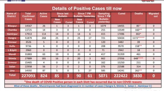 हिमाचल में सोमवार को आए कोरोना के 90 मामले, 61 लोग हुए स्वस्थ