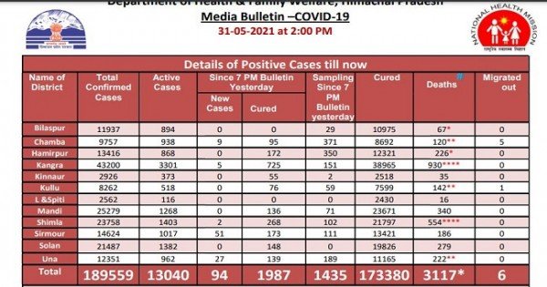 Covid 19: प्रदेश में थमने लगा कोरोना का कहर, सोमवार दोपहर तक 94 मामले, 1987 स्वस्थ, 6 मौत