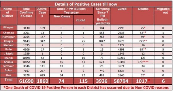 Covid 19: प्रदेश में तेजी से फैल रहा कोरोना, दोपहर तक आए 74 मामले, 115 हुए स्वस्थ