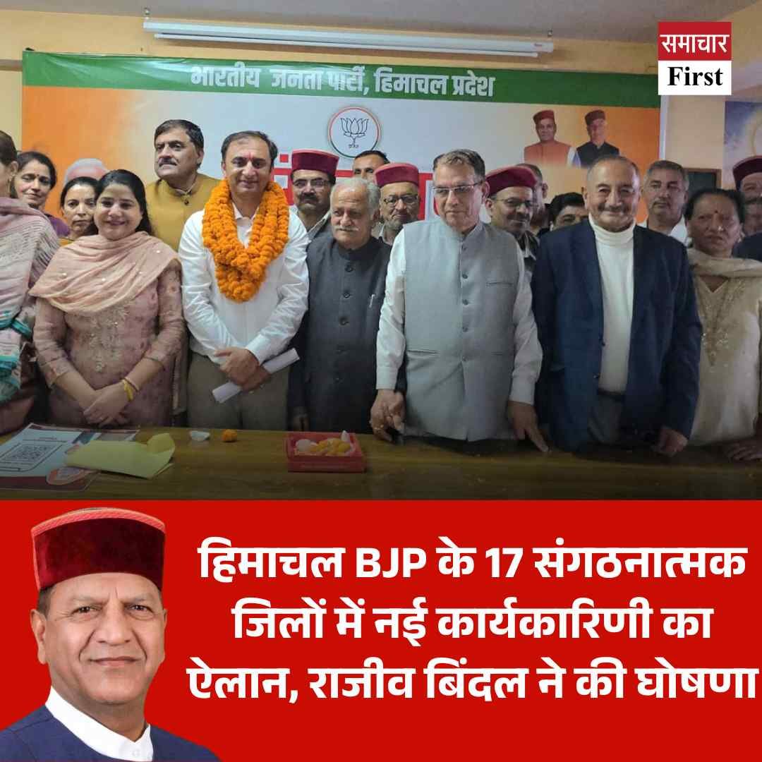 हिमाचल प्रदेश में भारतीय जनता पार्टी ने अपने सभी 17 संगठनात्मक जिलों में नई कार्यकारिणी की घोषणा कर दी है। BJP के प्रदेश अध्यक्ष राजीव बिंदल ने सोमवार दोपहर 3 बजे शिमला में एक प्रेस कॉन्फ्रेंस के माध्यम से इसका औपचारिक ऐलान किया। इस घोषणा के साथ ही पार्टी ने संगठनात्मक स्तर पर अपनी टीमों को सक्रिय कर दिया है, जो आगामी चुनावों के लिए महत्वपूर्ण है।