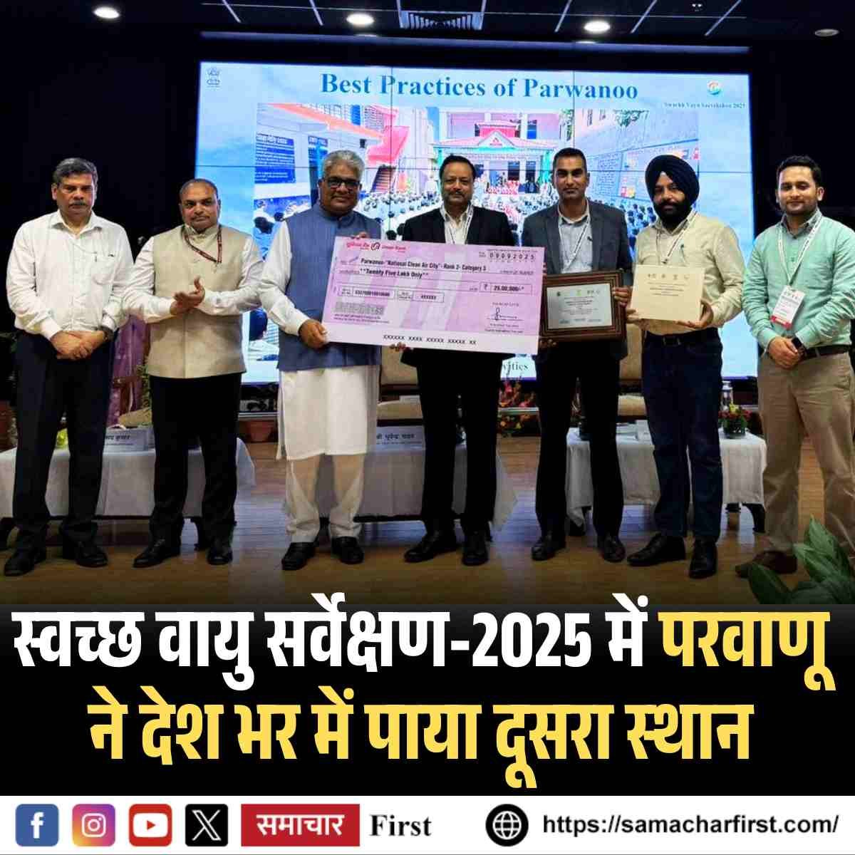 ➤ स्वच्छ वायु सर्वेक्षण-2025 में परवाणू देश में दूसरे स्थान पर