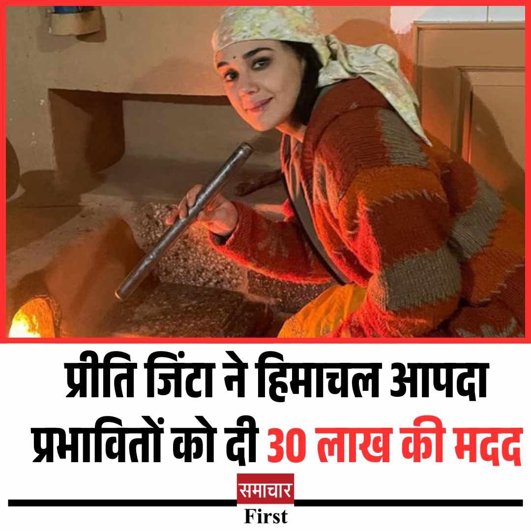 ➤ प्रीति जिंटा ने हिमाचल आपदा प्रभावितों की मदद को दिए 30 लाख