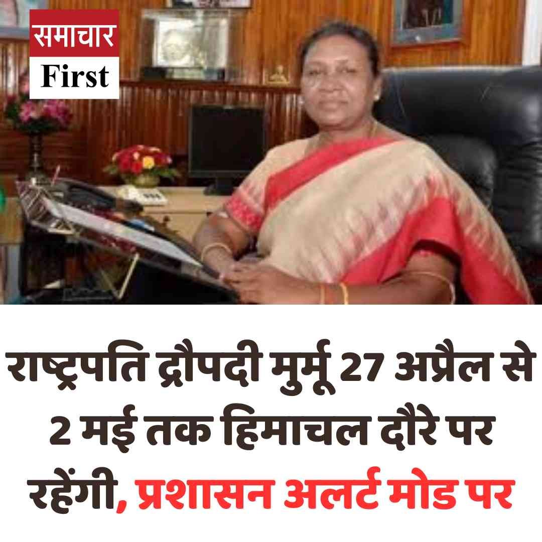 राष्ट्रपति Droupadi Murmu 27 अप्रैल से छह दिवसीय हिमाचल प्रदेश दौरे पर आ रही हैं। तय कार्यक्रम के अनुसार वह 27 अप्रैल को दिल्ली से चंडीगढ़ होते हुए शिमला पहुंचेंगी। दोपहर करीब 12:15 बजे उनका हेलिकॉप्टर कल्याणी हेलिपेड पर उतरेगा, जिसके बाद वह छराबड़ा स्थित राष्ट्रपति निवास रिट्रीट में ठहरेंगी। राष्ट्रपति सचिवालय की ओर से ऐसे ग्रीष्मकालीन प्रवास पहले भी जारी किए जाते रहे हैं।