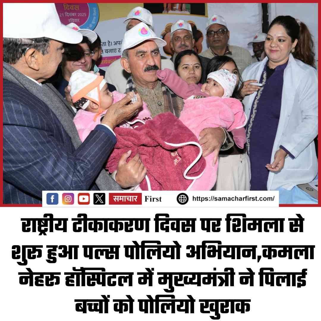 राष्ट्रीय टीकाकरण दिवस पर शिमला से शुरू हुआ पल्स पोलियो अभियान,कमला नेहरू हॉस्पिटल में मुख्यमंत्री ने पिलाई बच्चों को पोलियो खुराक