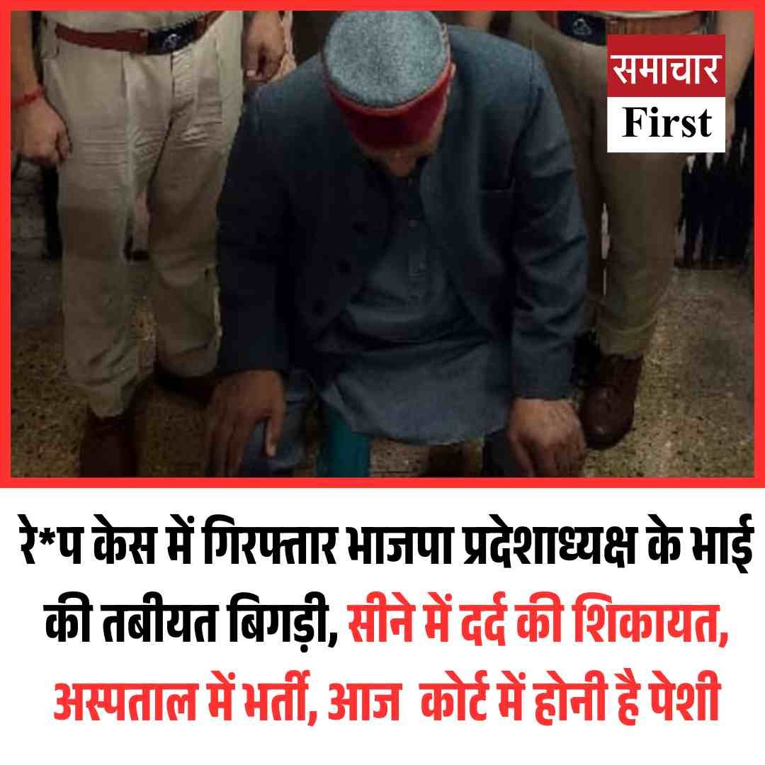 8 अक्टूबर को पीड़िता ने सोलन के महिला थाना में मामला दर्ज कराया। पुलिस ने 10 अक्टूबर को आरोपी को गिरफ्तार किया। गिरफ्तारी के बाद मेडिकल जांच के दौरान अचानक सीने में दर्द उठने पर आरोपी को अस्पताल में भर्ती करना पड़ा।