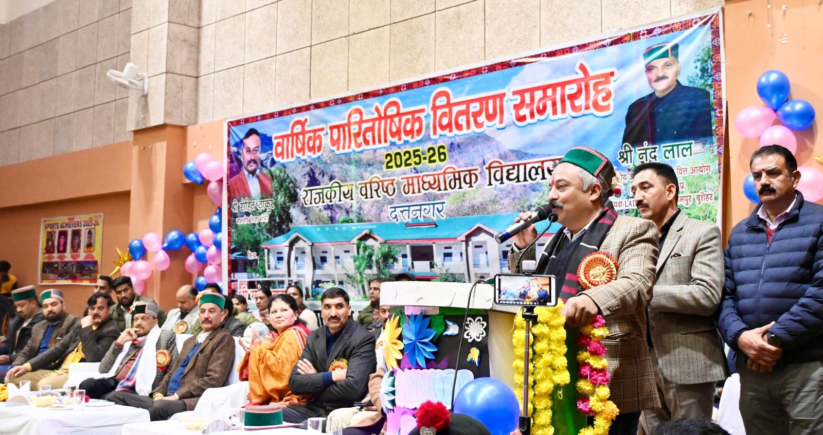 रोहित ठाकुर ने कहा कि निजी और सरकारी स्कूलों में शिक्षा का स्तर समान करने के लिए सरकार ने नियमों में आवश्यक संशोधन किए हैं, जिनके सकारात्मक परिणाम सामने आ रहे हैं। उन्होंने दत्तनगर स्कूल के शत-प्रतिशत बोर्ड परिणाम और टॉप 100 में 29 विद्यार्थियों के चयन को स्कूल, अध्यापकों और अभिभावकों की मेहनत का परिणाम बताया।