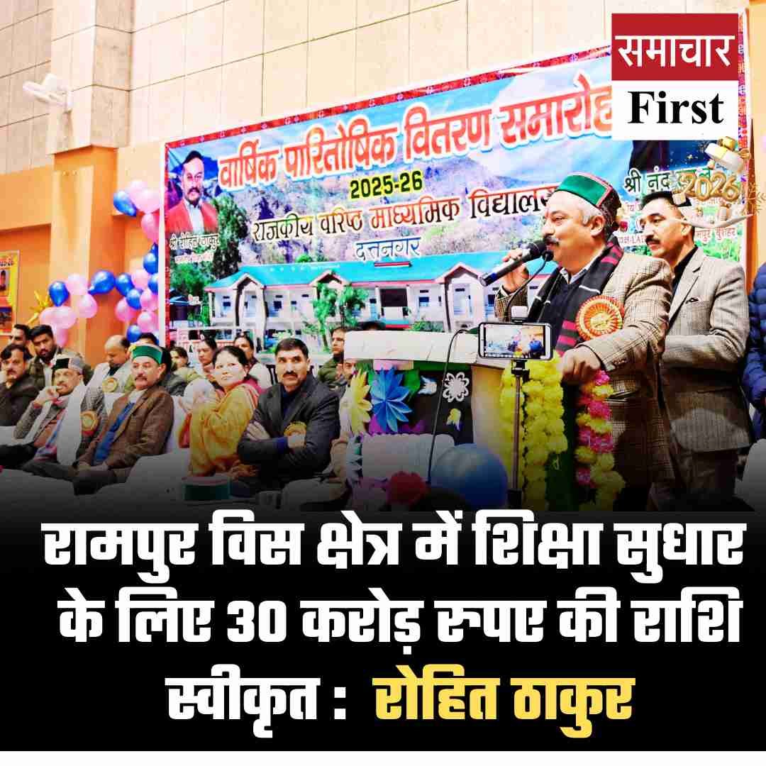➤ रामपुर विधानसभा क्षेत्र में शिक्षा सुधार के लिए 30 करोड़ रुपए स्वीकृत