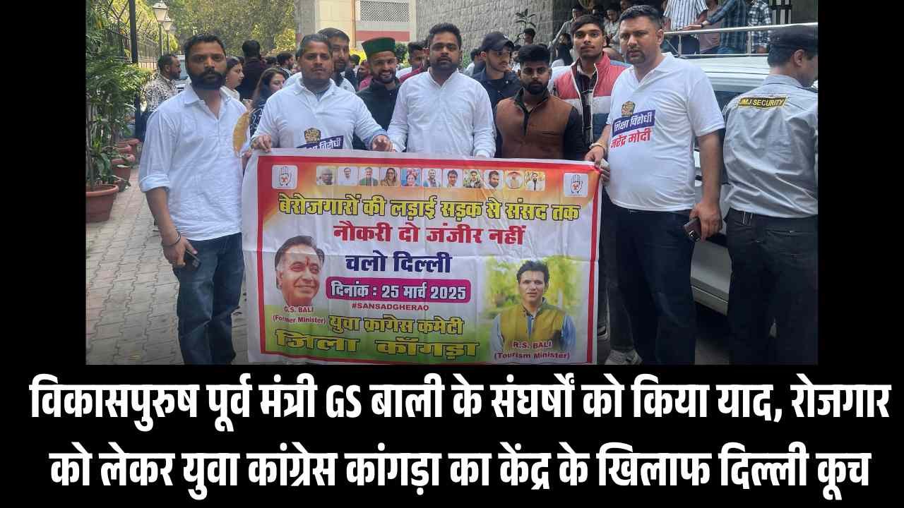विकासपुरुष पूर्व मंत्री GS बाली के संघर्षों को किया याद, रोजगार को लेकर युवा कांग्रेस कांगड़ा का केंद्र के खिलाफ दिल्ली कूच