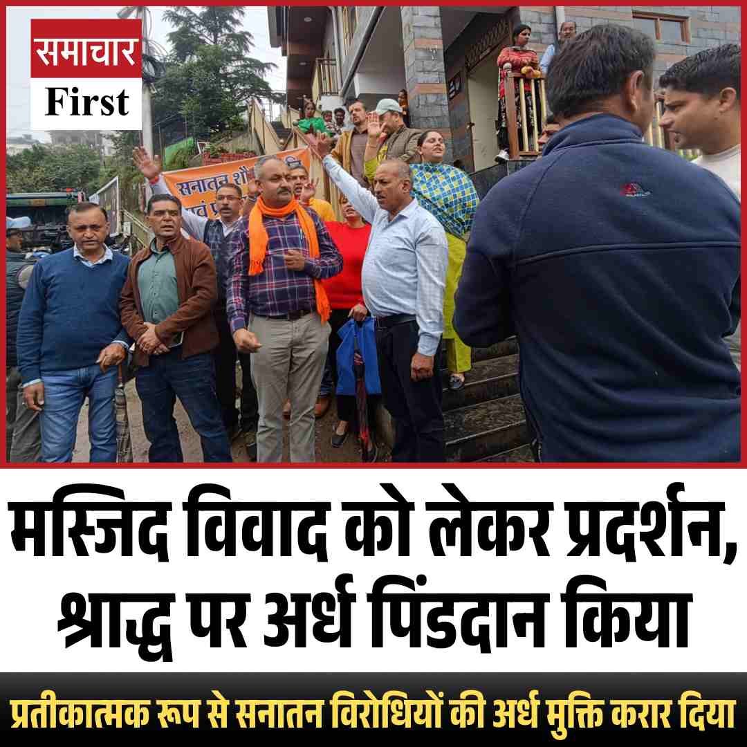 शिमला के संजौली क्षेत्र में अवैध मस्जिद विवाद एक बार फिर तूल पकड़ गया है। हिंदू संगठनों ने आज मस्जिद के बाहर जोरदार विरोध-प्रदर्शन किया और सरकार, वक्फ बोर्ड तथा सनातन विरोधियों के खिलाफ नारेबाजी की। खास बात यह रही कि प्रदर्शनकारियों ने मस्जिद विवाद को लेकर अर्ध पिंडदान किया और श्राद्ध के अवसर पर इसे प्रतीकात्मक रूप से सनातन विरोधियों की अर्ध मुक्ति करार दिया।