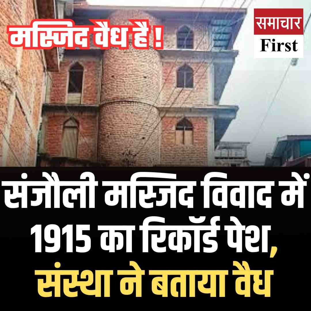 ➤ संजौली मस्जिद विवाद में नया मोड़, 1915 का राजस्व रिकॉर्ड पेश कर मस्जिद को वैध बताया