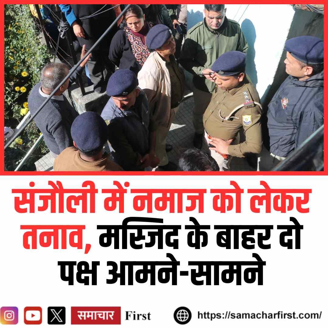 शिमला: हिमाचल प्रदेश की राजधानी शिमला के संजौली क्षेत्र में गुरुवार सुबह नमाज पढ़ने को लेकर तनाव बढ़ गया। यहां मुस्लिम समुदाय के लोग मस्जिद में नमाज के लिए पहुंचे थे, लेकिन स्थानीय लोगों ने इसका विरोध किया। विरोध कर रहे लोगों का आरोप था कि बाहरी राज्यों से आने वाले कुछ लोग पहले भी क्षेत्र का माहौल खराब कर चुके हैं।