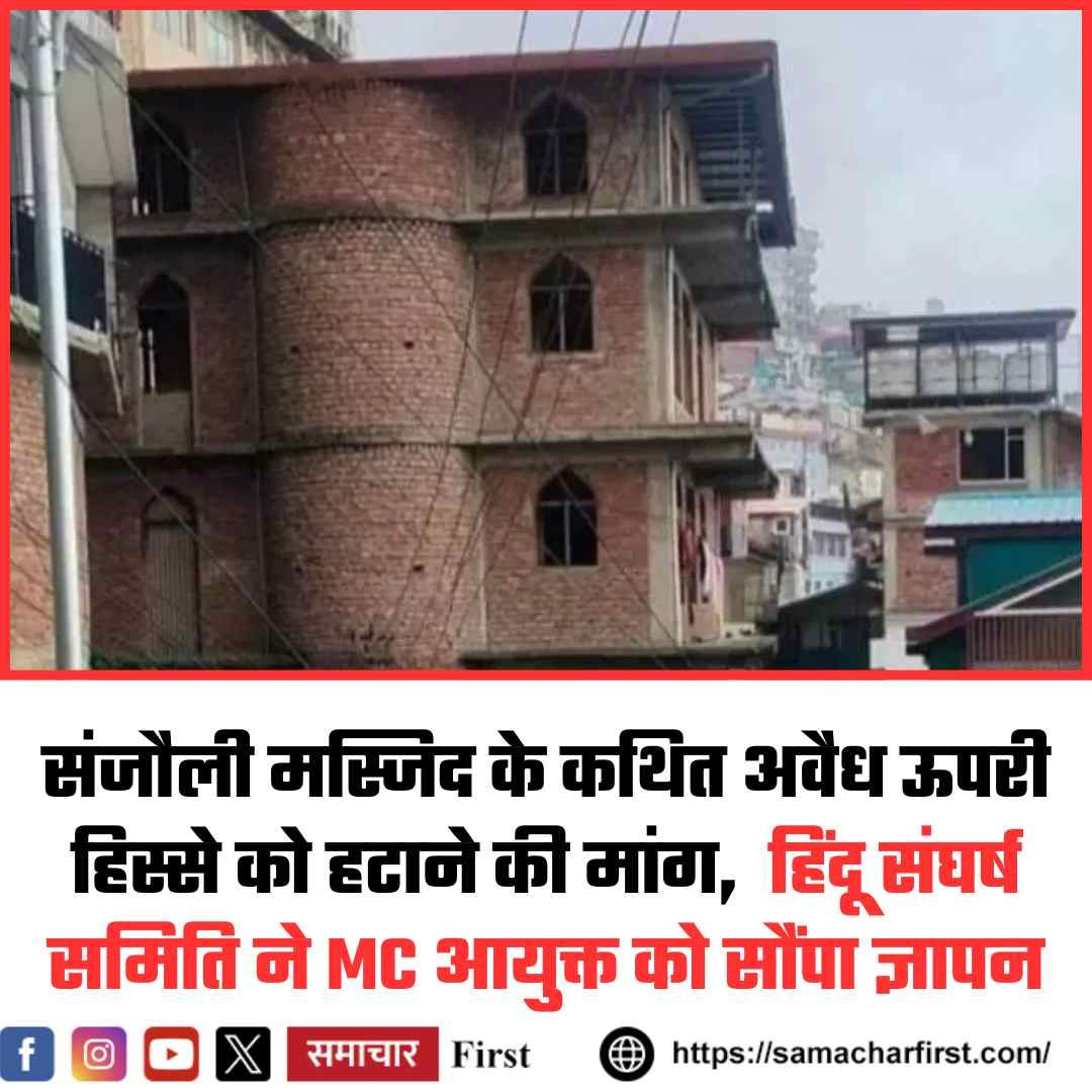 ➤ संजौली मस्जिद के कथित अवैध ऊपरी हिस्से को हटाने की मांग