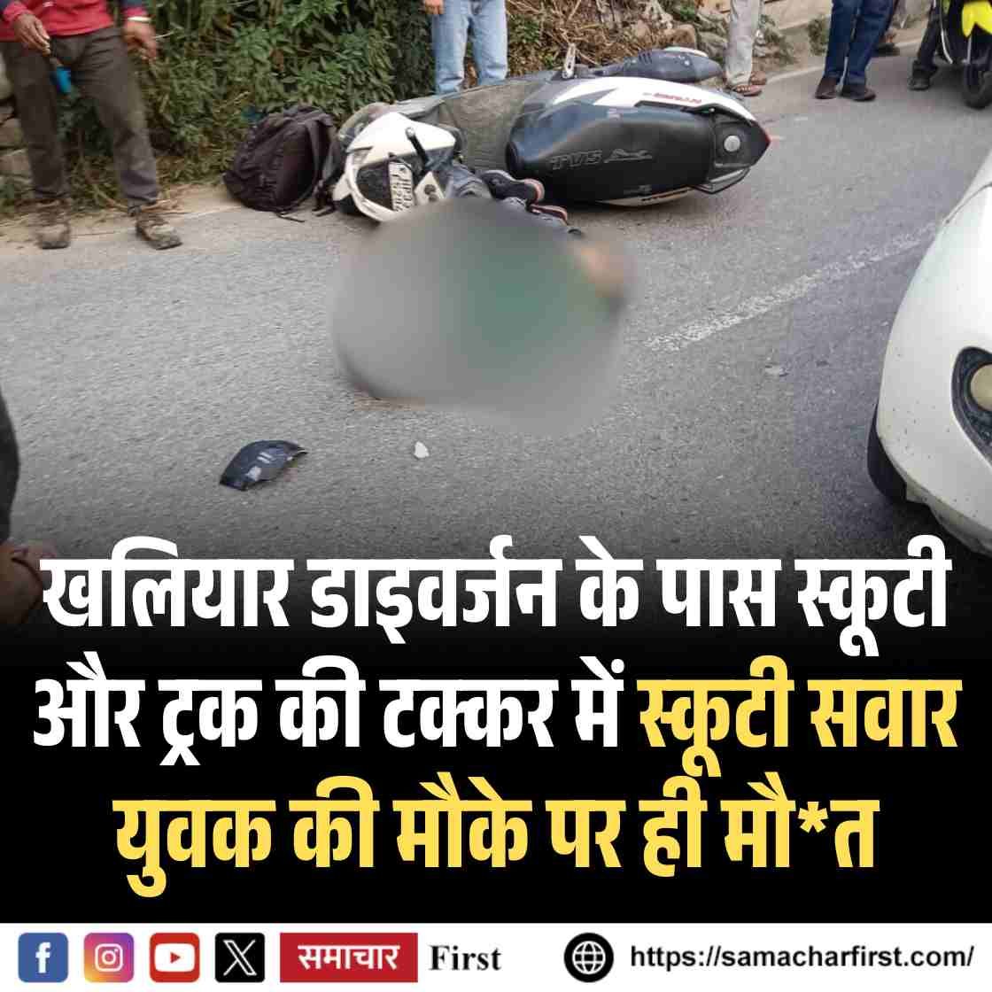 खलियार डाइवर्जन के पास स्कूटी और ट्रक की टक्कर में स्कूटी सवार युवक की मौके पर ही मौत