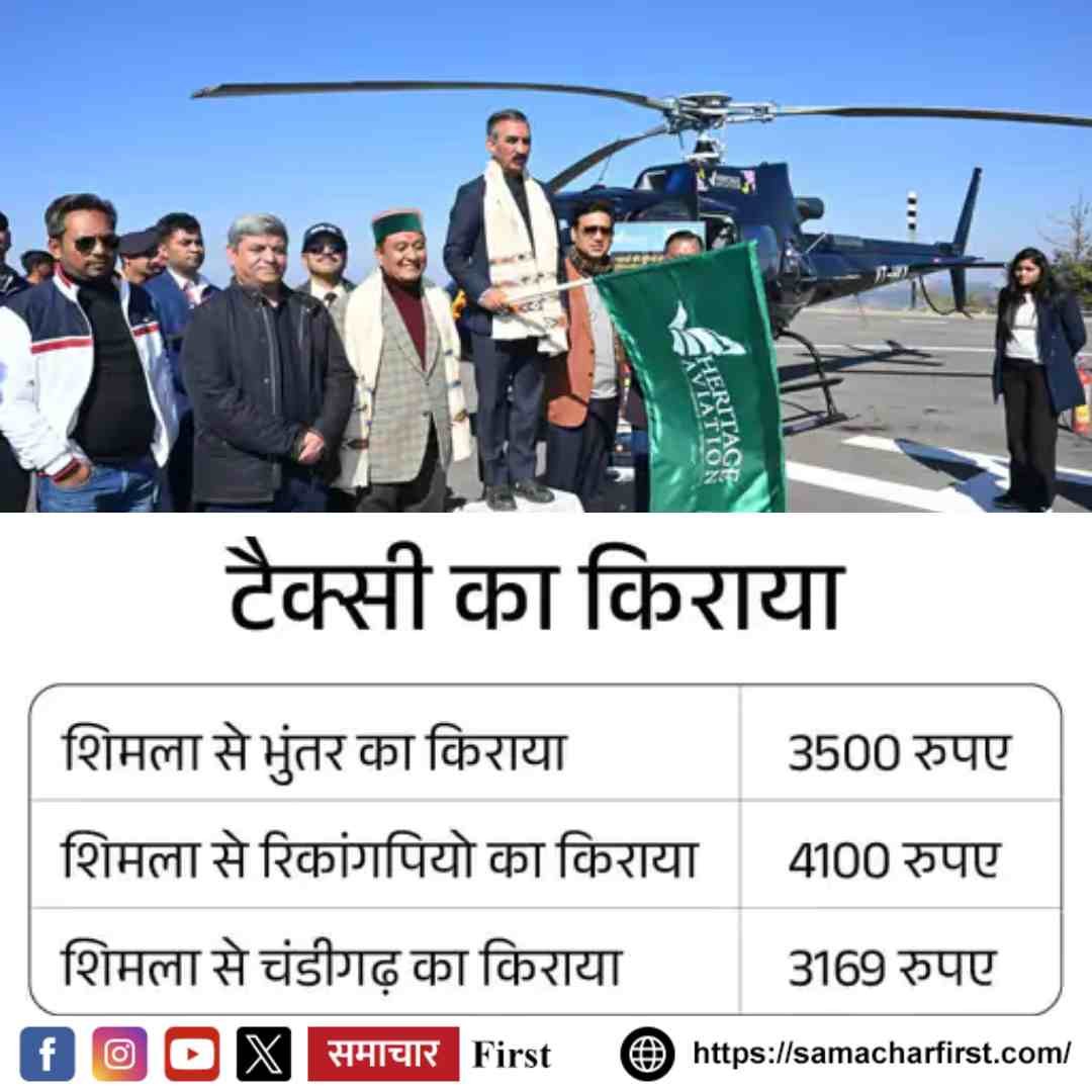 हिमाचल प्रदेश की राजधानी शिमला से चंडीगढ़, कुल्लू और रिकांगपिओ के लिए हेली टैक्सी सेवाएं शुरू हो गई हैं। मुख्यमंत्री सुखविंदर सिंह सुक्खू ने संजौली हेलीपोर्ट से हरी झंडी दिखाकर इन सेवाओं का शुभारंभ किया। इस मौके पर हेलीकॉप्टर को वाटर कैनन सल्यूट भी दिया गया।