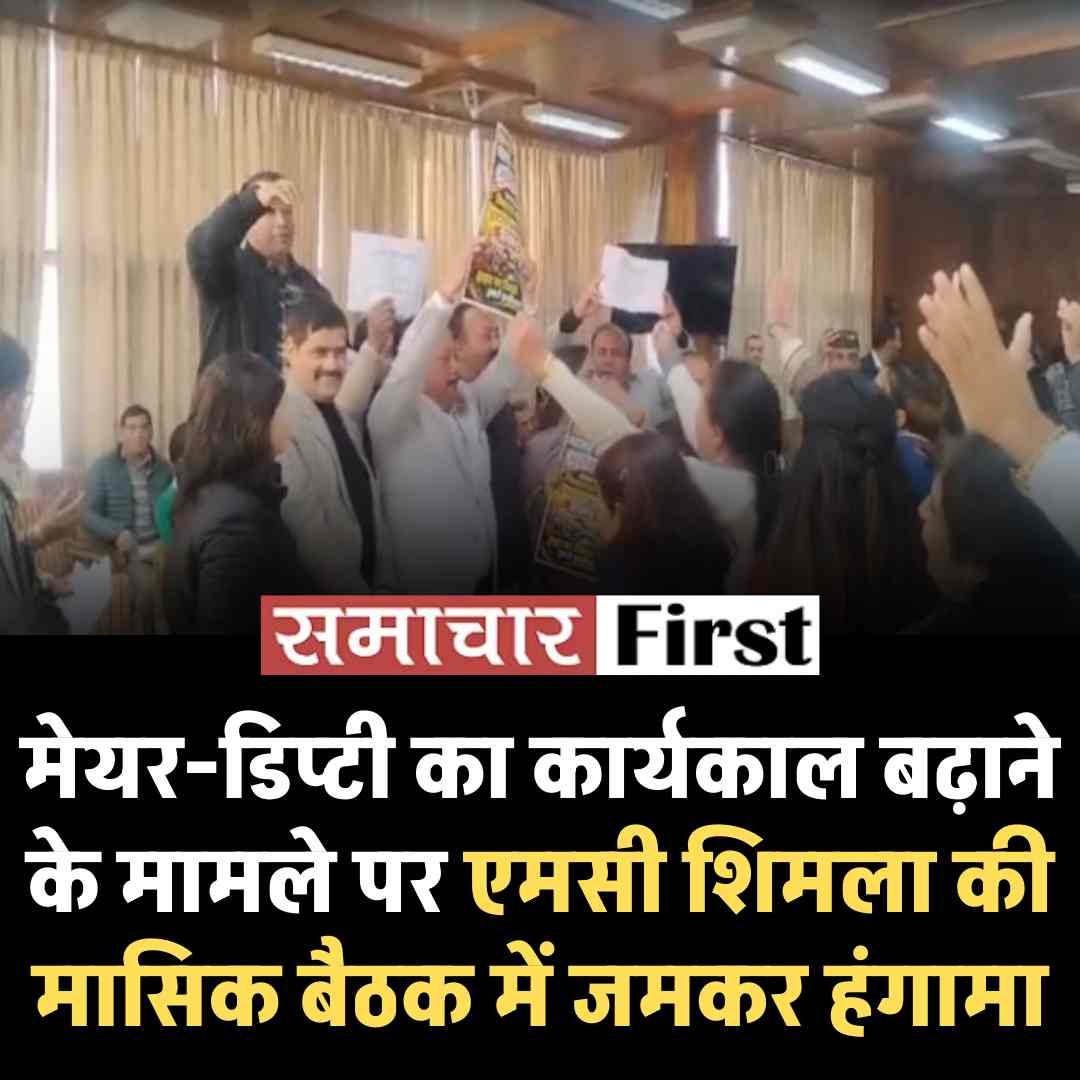 राजधानी शिमला के नगर निगम की मासिक बैठक शुक्रवार को सियासी अखाड़े में तब्दील हो गई, जब मेयर के कार्यकाल को लेकर भाजपा और कांग्रेस पार्षद आमने-सामने आ गए। बैठक शुरू होने से पहले ही भाजपा पार्षदों ने मेयर द्वारा सदन संचालन पर सवाल उठाते हुए जोरदार विरोध दर्ज कराया।