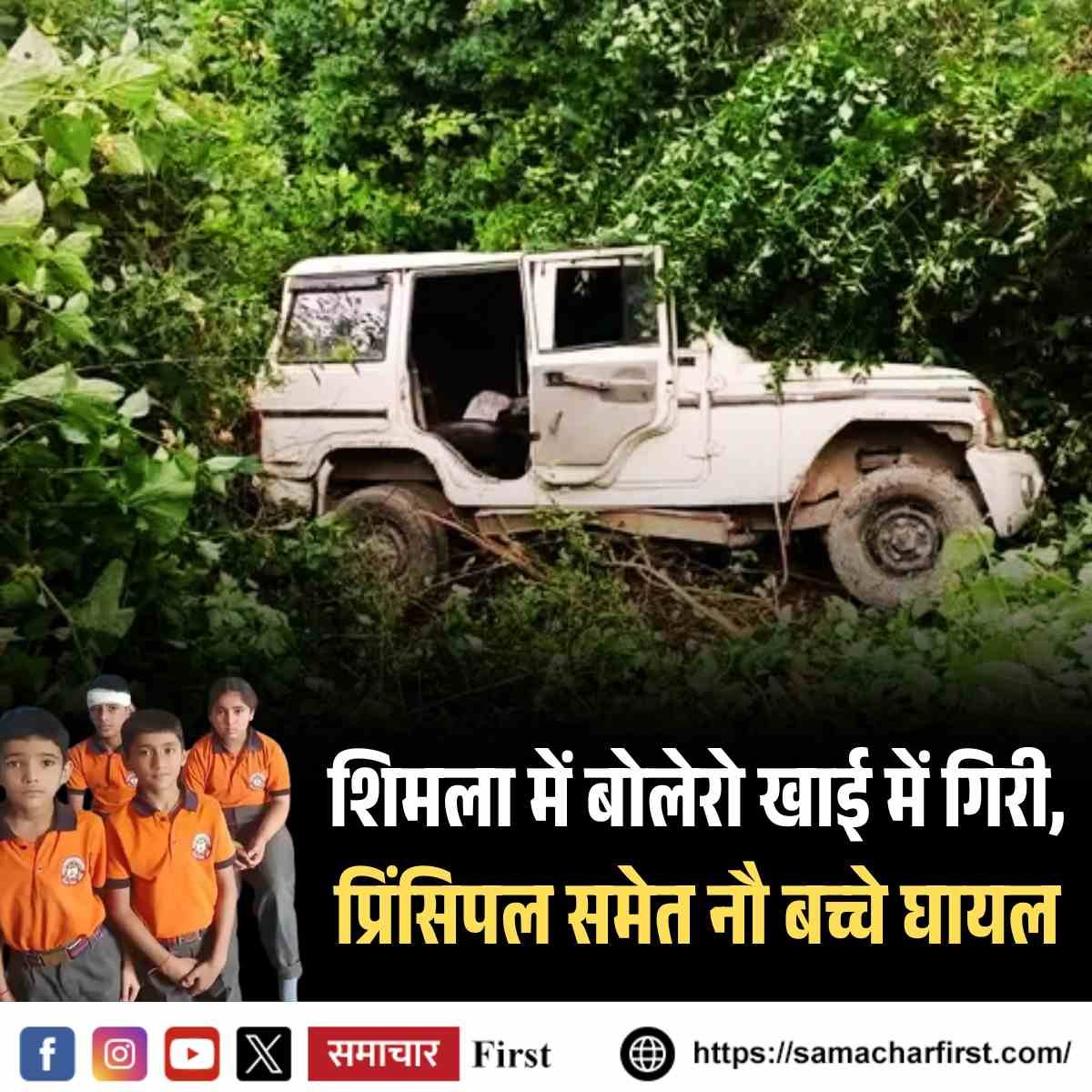 हिमाचल प्रदेश की राजधानी शिमला में आज सुबह एक बड़ा हादसा होने से टल गया। सरस्वती विद्या मंदिर स्कूल पनोही की बोलेरो वाहन, जिसमें स्कूल के प्रिंसिपल और 8 बच्चे सवार थे, अचानक अनियंत्रित होकर करीब 150 मीटर गहरी खाई में जा गिरी। गनीमत रही कि इस दर्दनाक हादसे में किसी की भी जान नहीं गई और सभी को सिर्फ मामूली चोटें आईं।