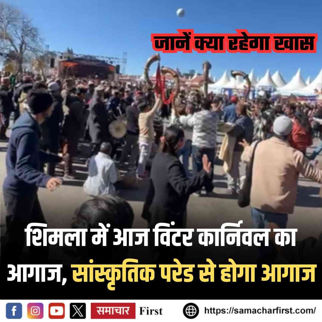 हिमाचल प्रदेश की राजधानी शिमला में आज से बहुप्रतीक्षित विंटर कार्निवल का आगाज होने जा रहा है। कार्निवल की शुरुआत दोपहर बाद भव्य सांस्कृतिक परेड के साथ होगी, जिसे मुख्यमंत्री सुखविंद्र सिंह सुक्खू दोपहर तीन बजे समारोह स्थल से हरी झंडी दिखाकर रवाना करेंगे। यह परेड रिज स्थित एचपीएमएसी केंद्र से शुरू होकर लिफ्ट, मालरोड और स्कैंडल प्वाइंट से गुजरते हुए टाउन हॉल तक पहुंचेगी।