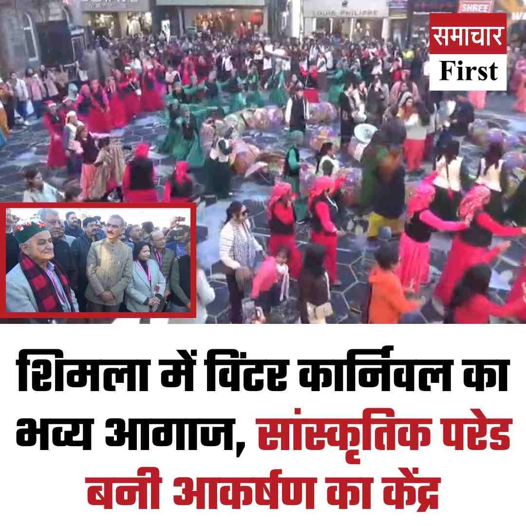 हिमाचल प्रदेश की राजधानी शिमला में आज से 9 दिवसीय विंटर कार्निवल का औपचारिक आगाज हो गया। कार्निवल की शुरुआत भव्य सांस्कृतिक परेड के साथ हुई, जिसे मुख्यमंत्री सुखविंद्र सिंह सुक्खू ने हरी झंडी दिखाकर रवाना किया। यह परेड रिज स्थित एचपीएमएसी केंद्र से शुरू होकर लिफ्ट, मालरोड और स्कैंडल प्वाइंट से होते हुए टाउन हॉल तक पहुंची।