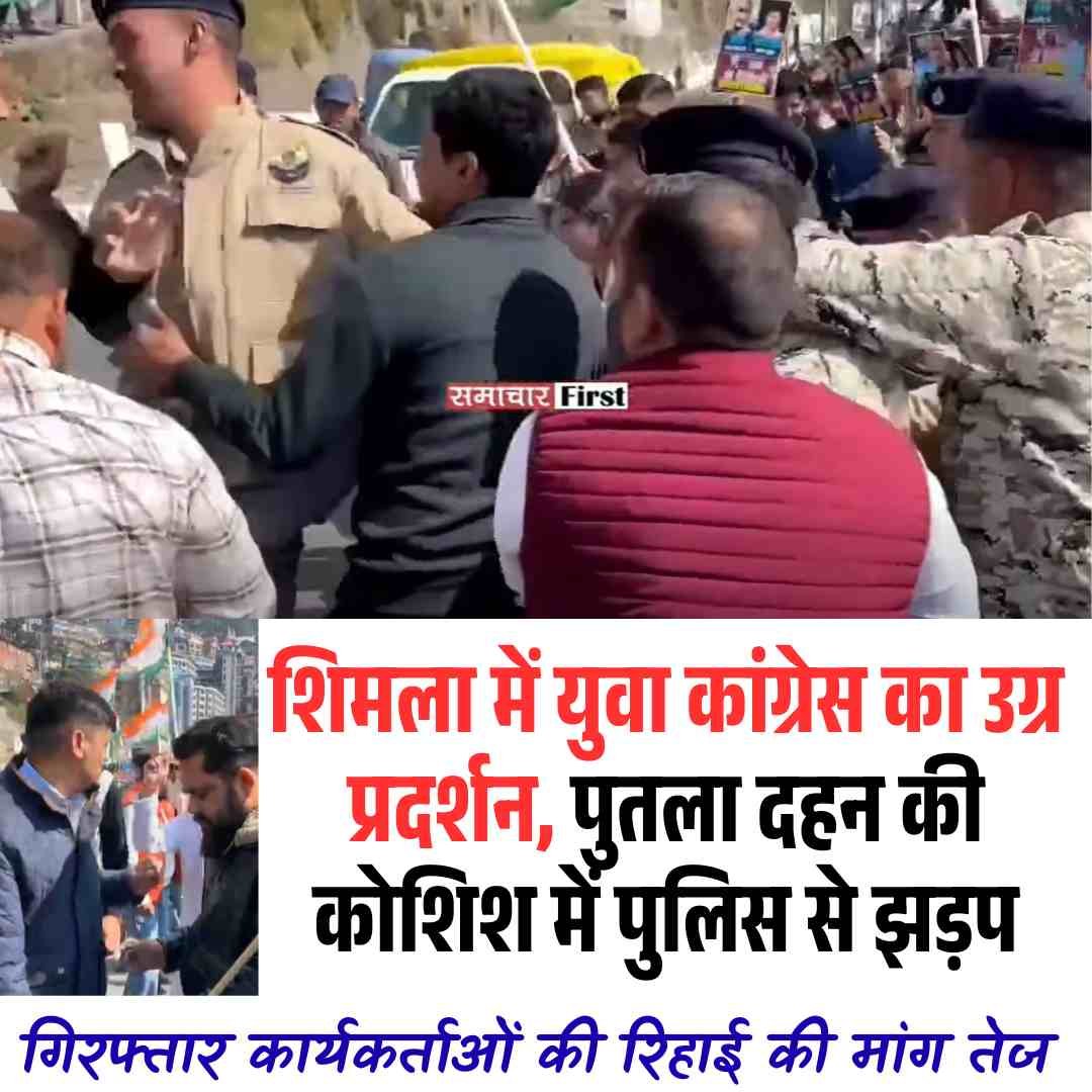 शिमला में युवा कांग्रेस का उग्र प्रदर्शन, पुतला दहन की कोशिश में पुलिस से झड़प; गिरफ्तार कार्यकर्ताओं की रिहाई की मांग तेज